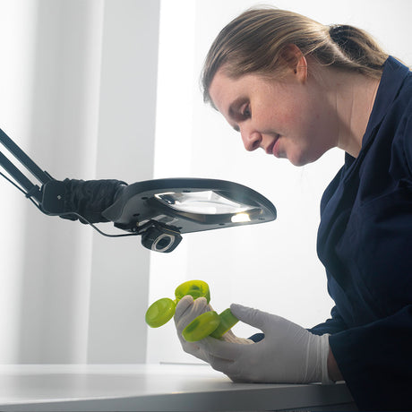 A professional bench magnifier that provides maximum clarity, flexibility and stability for any manufacturing, quality assurance, manipulation, or general examination task.